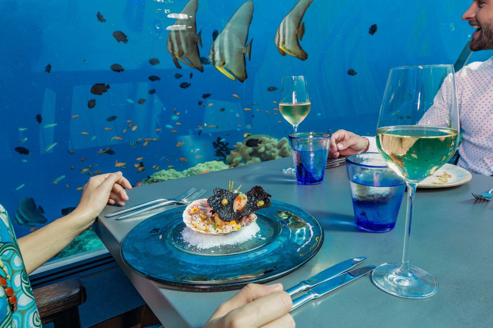 An Asian cocktail menu of world-class standard will be vying for your attention with the unmissable shochu cocktails that you can sip on while reclining in the shade during the day’s hottest hours or when the night falls and lights illuminate the ocean and reef sharks and rays make an appearance.
